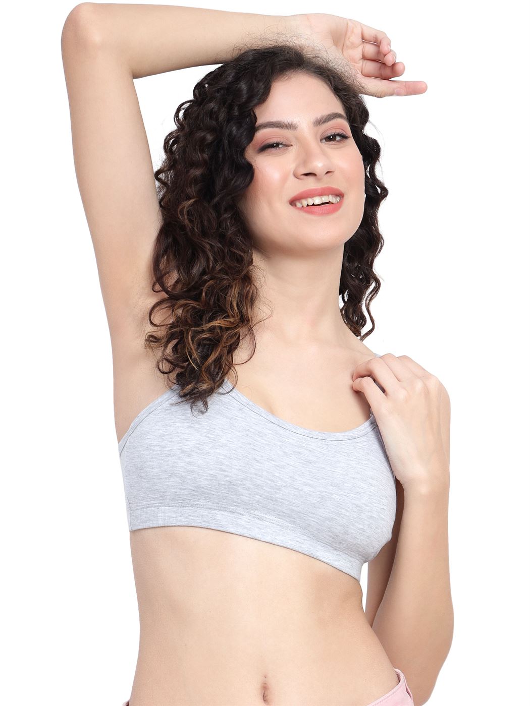 Tags: Double Layered Seamless Beginners Bra for Girls-DB Inner-Melange Grey